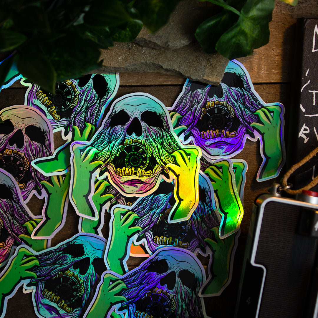 Time Eater Holographic Sticker – Motivational Vinyl Sticker for Procrastination Awareness & Productivity Focus